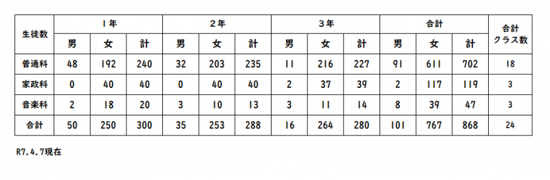 | 昭和38年 4月 1日 | 家庭科を家政科と改称 |